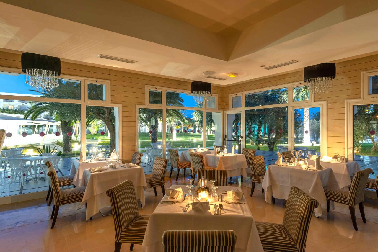 All inclusive ellátással foglalható, mely tartalmazza a büféjellegű reggelit, késői reggelit, ebédet és vacsorát, valamint különböző snackételek, helyi alkoholos- és alkoholmentes italok fogyasztását. A szálloda a’la carte éttermében előzetes foglalást követően egy alkalommal ingyenesen vacsorázhatnak a vendégek. A hotel hat bárral rendelkezik.