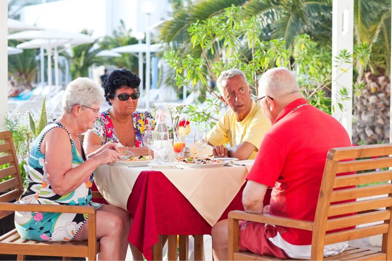 All Inclusive ellátás: büfé jellegű reggeli (07:00-10:00), késői reggeli (10:30-11:30), ebéd (12:30-14:00), vacsora (19:00-20:30 és 20:45-22:00), helyi alkoholos és alkoholmentes italok, kávé, tea, sütemények, snack. Az a'la carte étteremben heti két alkalommal, előzetes bejelentkezéssel ingyenes vacsora fogyasztható. Minden ital műanyag pohárban kerül felszolgálásra.